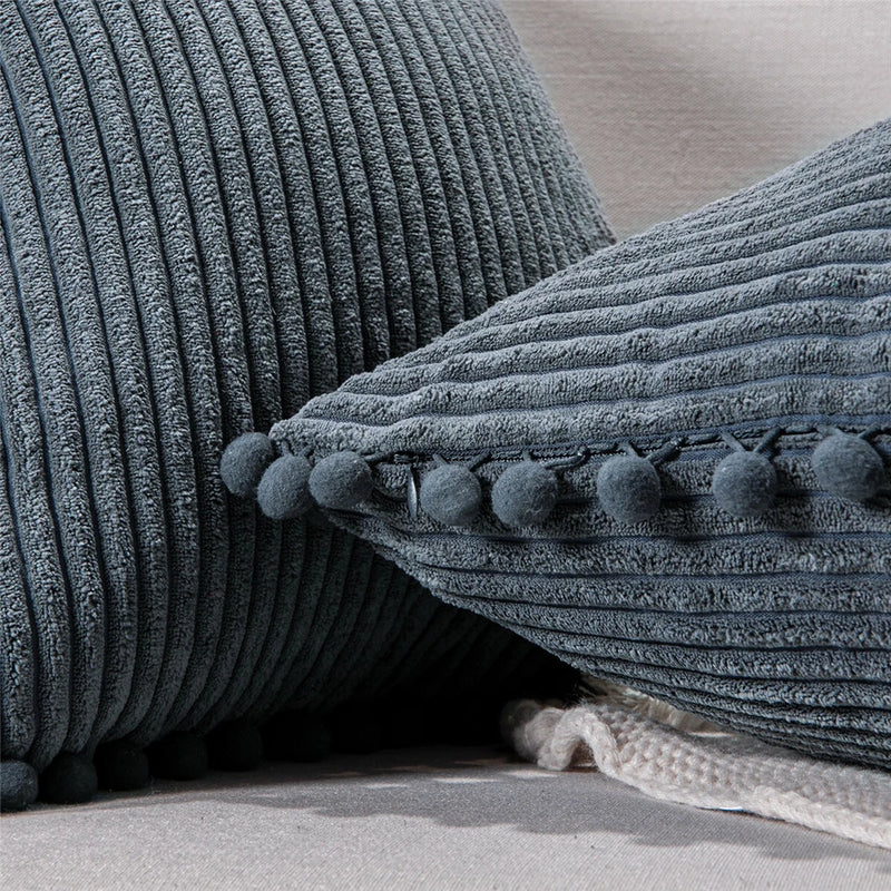 ✅ 2. Slip the Pom Poms Ball Pillow Cover over your cushion