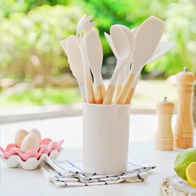 This complete 12-piece set includes everything from whisks to tongs, spatulas to ladles, so you're ready for any recipe. The silicone heads glide smoothly across your pots and pans without leaving a single scratch, protecting your expensive cookware investment for years to come.