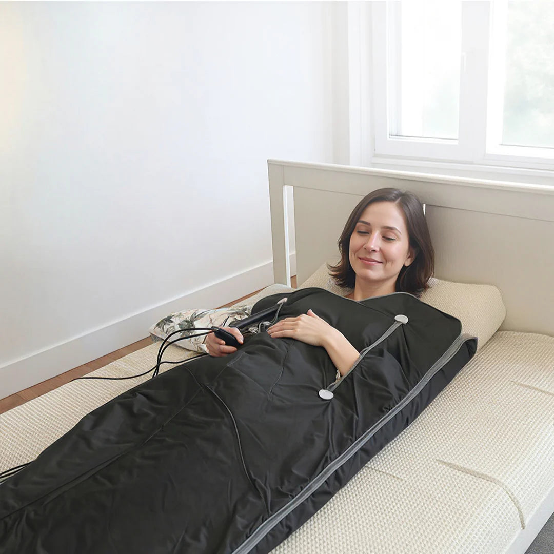 Our Vital Therma Blanket helps you burn up to 600 calories in just 40 minutes by mimicking a sauna-like heat experience. This gentle, full-body warmth promotes sweating, which supports detoxification by flushing out toxins and reducing water retention—perfect for those seeking a natural way to aid weight management and boost metabolism without intense exercise.